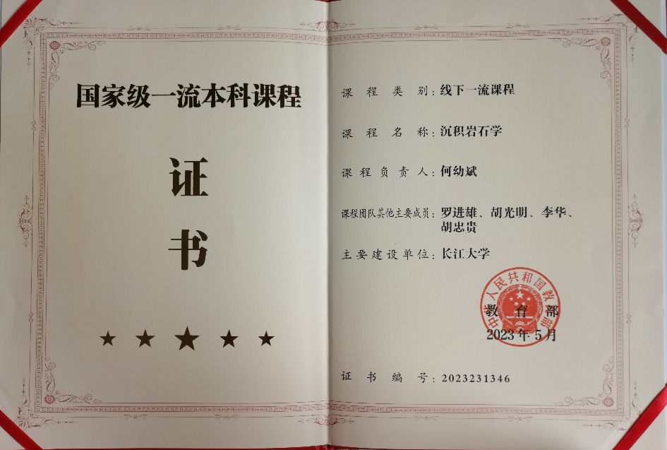 学院拥有“沉积岩石学”国家级一流本科课程(图10),“普通地质学”、“石油与天然气地质”等2门省级一流本科课程,1个国家级教学团队和2个省级教学团队。拥有国家级大学生校外实践教育基地(江汉油田实习基地)和湖北省油气勘探开发实验教学中心。另外,在河北秦皇岛、湖北松滋(图11)、大冶和通山设有4个野外地质实习基地,并在校内建设有三峡标本长廊、湖盆沉积模拟实验室和石油科技博物馆等校内实习基地,在中国石油、中国石化、中海油、美国俄克拉荷马州等建有本科生和研究生产学研合作培养实践基地。近年来,学院教师主编国家级规划教材4部,高等院校规划教材6部,获国家级、省级教学成果奖10项,其中国家二等奖1项,省部级特等奖1项,一等奖4项。