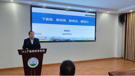 国家级科研平台申报工作”这一主题为大家介绍了学院国家重点实验室以及省部级共建实验室的平台布局。随后,韩登林副院长以“立足能源安全 肩负时代使命”为题,通过介绍国家能源安全与发展以及湖北省页岩气资源情况两个方面,为学生党员讲述了学院在能源科技创新、保障国家能源发展所做的发展与贡献。他说道:“能源安全是国家战略安全的重要基石,油气安全在国家能源安全中始终发挥着重要作用。政治使命需要政治担当,我们要矢志不渝,切实增强保障能源安全的责任感、使命感”。
