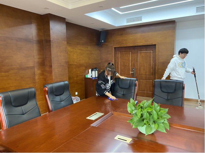 参加本次活动的何玥同学说:“活动很有意义,让我们进一步了解了劳动的价值与光荣。在集体合作中,不仅会议室变得干干净净,也让我们体会到了集体的力量,更体会到共产党人不怕苦、不怕累的精神。”