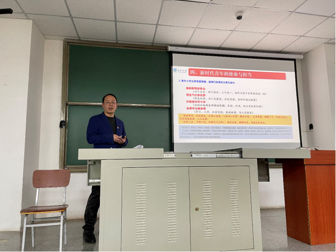 入党积极分子集中授课环节在武教B-103开展,学院党委书记江万哲以《新时代青年的使命与担当——学习领会十九届五中全会精神》为主题,为色情影片