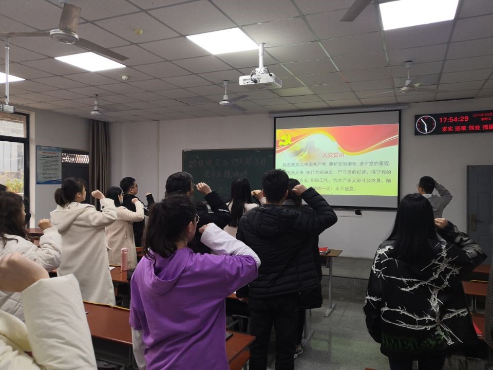 活动在庄严的国歌声中拉开帷幕。随后,支部书记曹日洲同志带领支部成员们重温入党誓词。