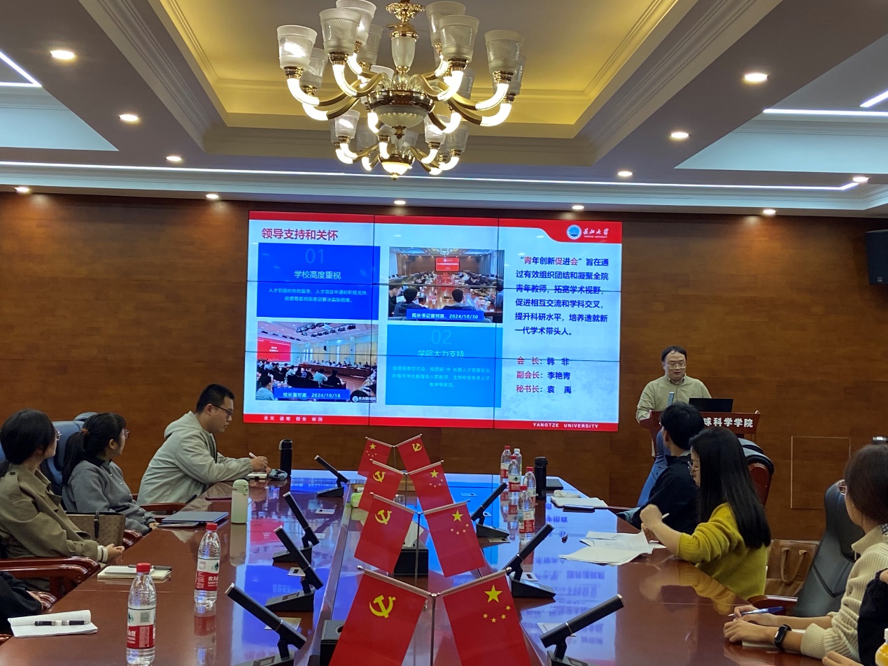 青促会”的成立背景及初衷,“青促会”旨在通过有效组织和支持,团结、凝聚全院青年教师,拓宽学术视野,促进相互交流和学科交叉,提升科研水平,培养造就新一代学术带头人。韩非同时对学院领导大力支持与悉心关怀青年人才表达了诚挚感谢。