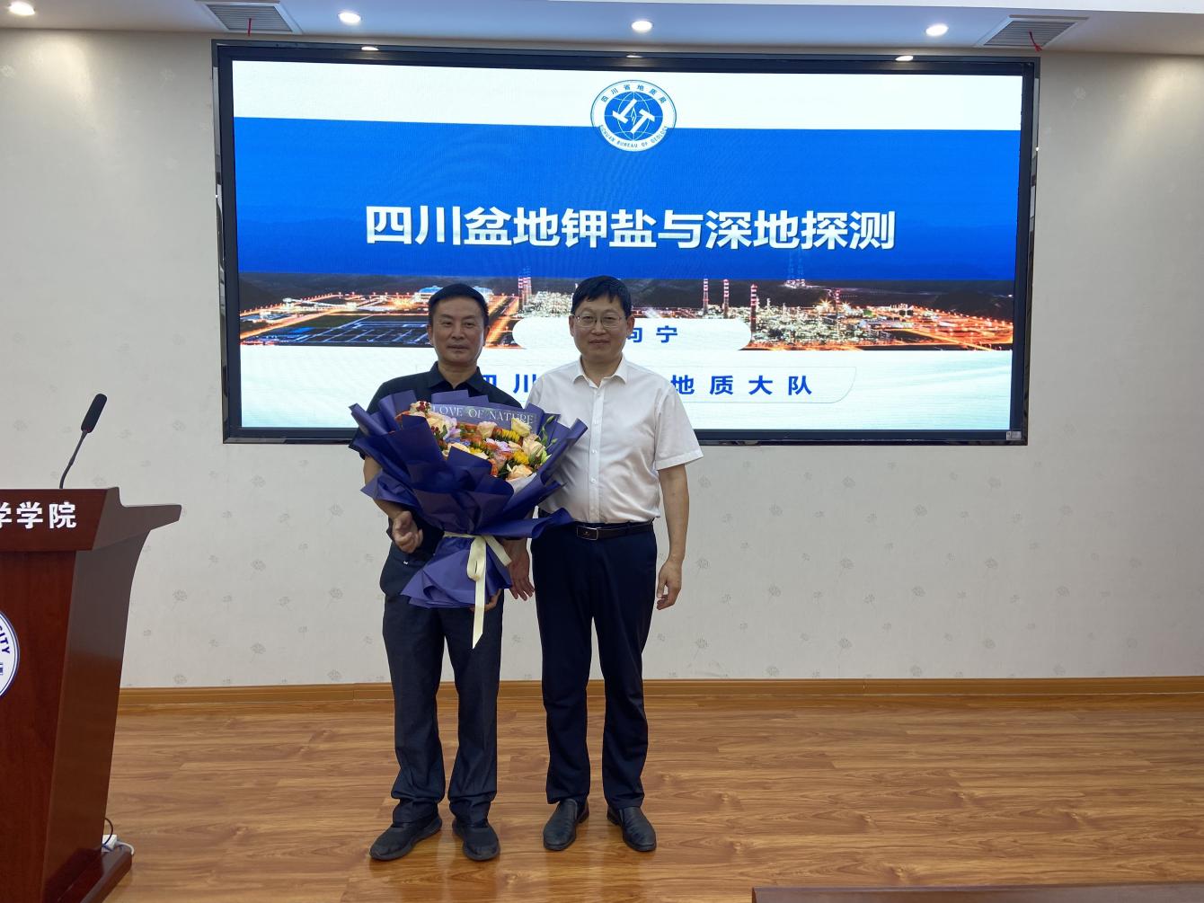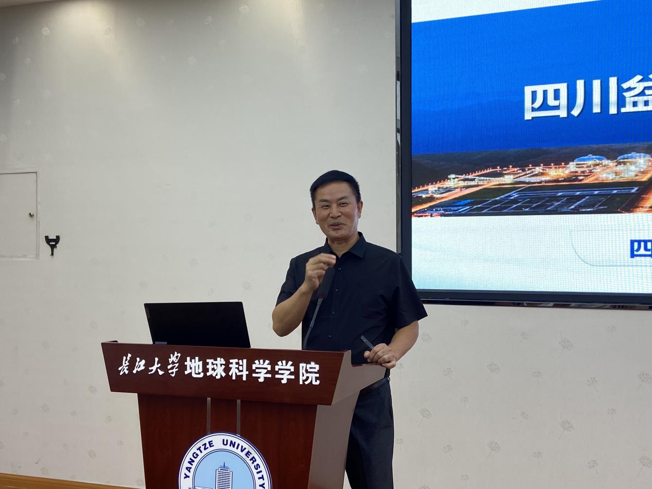 ,在石油科技大楼C301会议室为师生作题为《四川盆地钾盐与深地探测》的学术报告。报告会由院长朱光有主持。