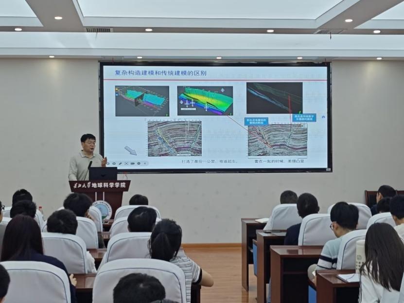 ,做客“地学之光”第388讲学术论坛,在武汉校区石油科技大楼C301为我校师生作题为《三维地质建模技术在地质研究中的应用》的学术报告,报告由胡光明教授主持。