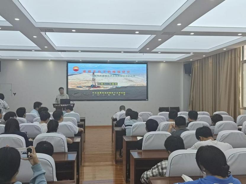 在互动交流环节,马富强高级工程师结合自身科研工作经历,细致耐心地解答了师生代表提出的“如何把拍下的剖面照片呈栅格状立体拼成”与“在使用过程中遇到的断层定位问题该如何解决”等问题,马富强高级工程师指出三维地质建模技术局限于构建美观的三维模型,更应该把三维地质建模平台当作一种集石油勘探与开发于一体的综合应用工具。