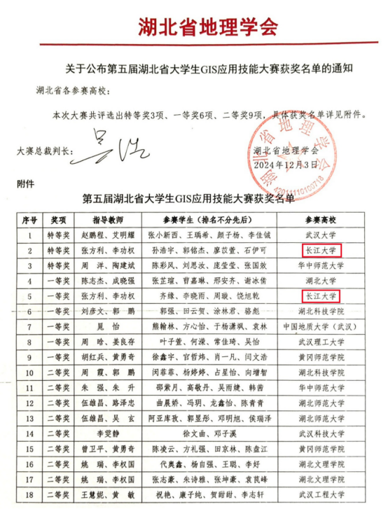 学子在该项赛事上连续四年获得全国一等奖的优异成绩,体现了我校地理信息科学专业的建设成果和应用型人才培养的卓越成效。