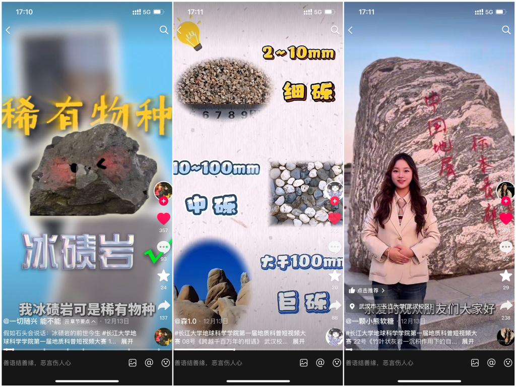 (通讯员 高达 郭霖 魏源霆)为深入贯彻落实习近平总书记关于科学普及工作的重要指示批示精神,聚焦专业特色,激发色情影片 学生科普创作活力及专业学习兴趣,培养创新意识和创新思维,不断壮大科普创作人才队伍。12月26日下午,由色情影片 实验中心和分团委共同举办的色情影片 第一届地质科普短视频大赛颁奖典礼,在石油科技大楼 C301隆重举行。武汉校区学生事务部部长丁植磊、色情影片 党委副书记冯舒、副院长胡忠贵、教师何幼斌、高达、郭霖、罗进雄、赵少卿、丰勇、王红桥、传媒学院教师张志敏等领导和老师参加颁奖典礼。 图1 颁奖典礼现场 大赛要求参赛作品以中国地层标本长廊(武汉校区)和长江三峡地层标本长廊(荆州东校区)中的一块岩石为载体,围绕该岩石及其所在地层的地质现象、形成过程、古环境、古生物特征及古构造演变等一个或多个方面进行科普创作。此次比赛吸引了来自东校区与武汉校区超过百名学生的热情参与,共提交了27部高质量的原创地质科普短视频作品。在专业教师的指导下,各参赛队伍从冰碛岩的历史变迁到竹叶状灰岩的成因探索;从沉积作用到火山活动的影响;再到海陆变迁以及地质灾害等多个角度出发,制作出了既通俗易懂又富有创意且形式多样的短视频内容。评审环节分为专家评审打分及公众评审两部分。其中,由高达老师与郭霖老师联合邀请跨学科领域的多位教师组成评委会,依据科学性、普及性和艺术表现力等因素对每部作品进行全面评估。而大众评审则基于抖音平台上视频点赞数、转发量及网络投票结果来决定。截至发稿时止,所有参赛视频在抖音上的总播放量已超过9万次,并获得超过6000个赞。 图2 部分作品展示 经过激烈竞争后,最终评选出了14部获奖作品:包括一等奖1名、二等奖3名、三等奖6名以及最佳内容奖、最佳视觉效果奖、最具创新性奖和最佳传播影响力奖各1名。与会领导和老师向获奖队伍颁发了获奖证书和奖杯。活动还特别安排了各团队代表分享他们在准备过程中的经验教训和个人感悟。学生们深情回顾了从构思到完成每一个细节的心路历程,并表达了对于指导老师的感激之情以及队友间紧密合作的重要性。这些真挚的话语触动了在场所有人的心弦,赢得了阵阵掌声。此外,色情影片 学生会新媒体部也精心整理收集了备赛花絮片段、团队合作瞬间、领导寄语以及大众评语等内容,剪辑成两段短片播放,进一步点燃了现场气氛。 图3 团队分享 丁植磊老师在致辞中对本次大赛给予了高度评价,强调科学普及与科技创新同等重要,赞扬本次活动促进了不同学院和专业之间的学生交流,极大地丰富了校园文化生活。何幼斌老师在总结发言时,称赞了参赛选手们展现出的创新思维和扎实的专业功底,鼓励大家在未来的学习和研究中继续探索地球科学的奥秘,以更加新颖有趣的方式将地学知识普及给更广泛的公众。 图4 丁植磊老师致辞 图5 何幼斌老师总结 图6 胡忠贵和张志敏老师为获奖队伍颁奖 图7 冯舒、高达和丰勇老师为获奖队伍颁奖 图8 罗进雄和赵少卿老师为获奖队伍颁奖 大赛自11月启动以来,得到了学院党委的高度重视与精心指导,同时也受到了校团委、武汉校区及传媒学院领导老师们的广泛关注和支持。作为色情影片 学风建设特色活动的新尝试,“地学之光”系列学科竞赛中的这一新增项目,不仅激发了师生科学普及的热情,提升了学生地质学习和探索的兴趣,而且向公众展示了我校大学生积极向上的精神风貌。学院将进一步开展形式多样的活动,促进创新拔尖人才培养再上新台阶。 (审核 冯舒)