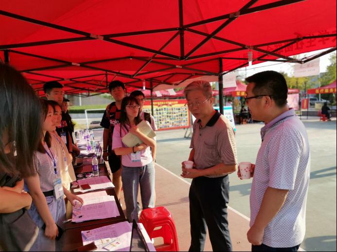 迎新处了解新生接待情况,与新生及现场工作人员亲切交流,为同学们的迎新工作加油打气。