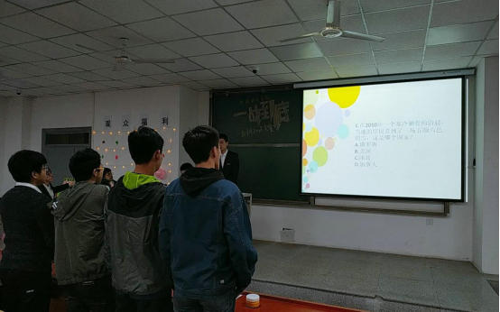 本次活动参赛队伍多达29支,参赛选手突破百人,全部赛程包含初赛、复赛、积分赛、抢答赛、决赛五个环节,比赛内容涉及党团知识、时政方针、科技资讯、美食文化、天文地理、生活常识和学术经典等18个知识领域。在题库的设计时,结合了“学习强国app”中当下时政热点巧妙构思题目,以竞答与游戏的新颖形式向同学们传播新知识。在比赛过程中,不仅对题库范围进行了创新,全新的比赛环节也同样引人注目。活动组引进了“复活卡”道具和“场外求助”环节,增强了竞赛的趣味性与同学们的积极性。同学们在欢快的气氛中学习到了各类综合知识。