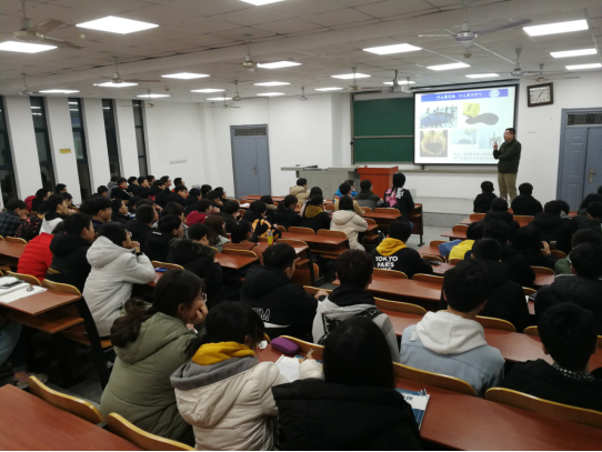 何贞铭老师向地信专业的同学们首先讲述了不同专业方向的培养目标及发展方向。接着,他以自身经历为例,鼓励同学们去学好每一门课程,对于陌生的知识不能畏惧不能退缩。他希望大家尽快培养自己的专业兴趣,从而提高学习的效率。对于同学们比较困惑的选课问题,何老师详细地给同学们分析了公选课及专选课的特点。对此,他说:“同学们不能局限于新开的课程或是与自己专业相关的课程,可以根据自己的兴趣爱好来选择课程,最大化地拓展自身知识面。”最后,何老师还建议同学们平时多参加学校各种课外活动,坚持以学为主,全面发展。