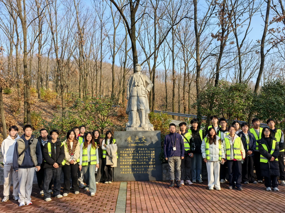 在九真山隘口,全体师生怀着崇敬的心情,瞻仰了为掩护抗日部队主力撤退、镇守侏儒山而壮烈牺牲的抗日英烈朱立文的纪念碑。高达老师深情地向同学们讲述了蔡树藩和朱立文等革命先烈艰苦卓绝的斗争历程和为国捐躯的感人事迹。先烈们坚定的理想信念和无私的奉献精神,深深感染着在场的每一位同学,激发了大家“为祖国献石油、刻苦学地质”的爱国热情与使命担当。