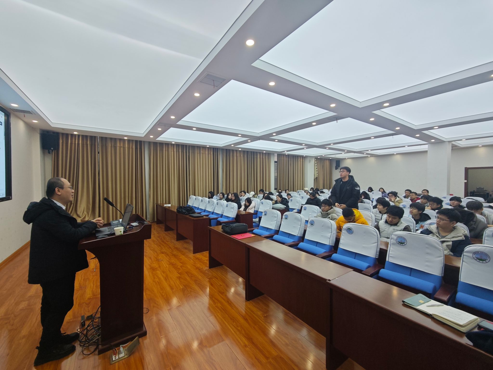 在互动环节,现场气氛热烈。学生们围绕“AI对前后端开发的替代性”、“GIS相关项目实践”以及“浮木云平台与Cursor等工具的区别”等前瞻性问题积极提问。教师代表则针对如何结合企业产品提升学生竞赛水平、冲刺高等级奖项与专家进行了深入探讨。