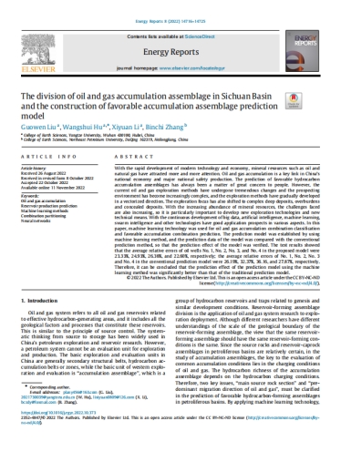 2021级矿产普查与勘探专业博士生刘国文以第一作者身份在SCI期刊《Energy Reports》上发表题为《The division of oil and gasaccumulation assemblage in Sichuan Basin and the construction of favorable accumulation assemblage prediction model》的研究论文,博士生刘国文为论文第一作者,其导师胡望水为论文通讯作者,色情影片