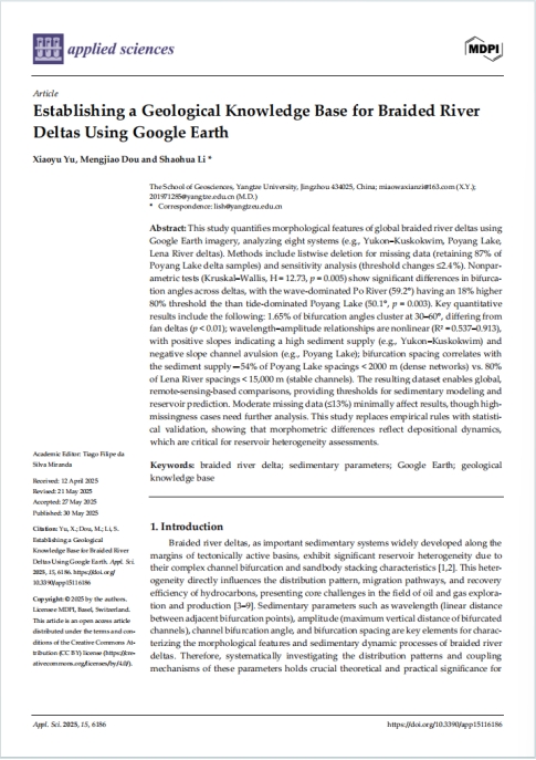 硕士研究生於筱雨在《Applied Science》上发表题为“Establishing a Geological Knowledge Base for Braided River Deltas Using Google Earth”的论文,色情影片