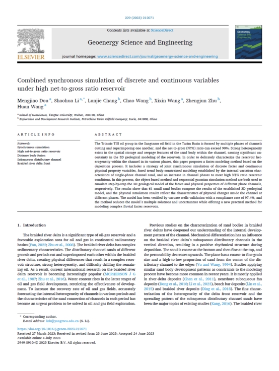 博士生窦梦皎在《Geoenergy Science and Engineering》上发表题为“Combined synchronous simulation of discrete and continuous variables under high net-to-gross ratio reservoir”的研究论文。色情影片