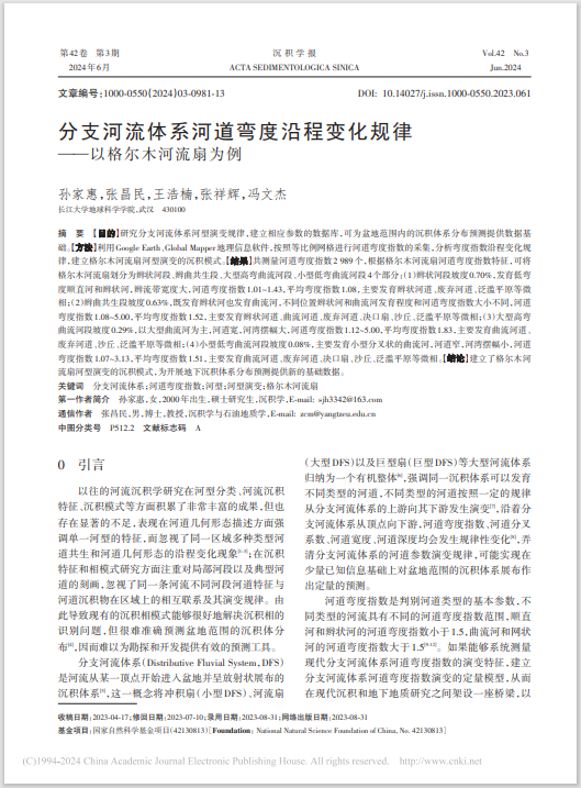 为论文第一署名单位,硕士研究生孙家惠为论文第一作者,张昌民教授为通讯作者。