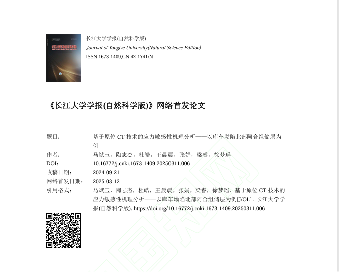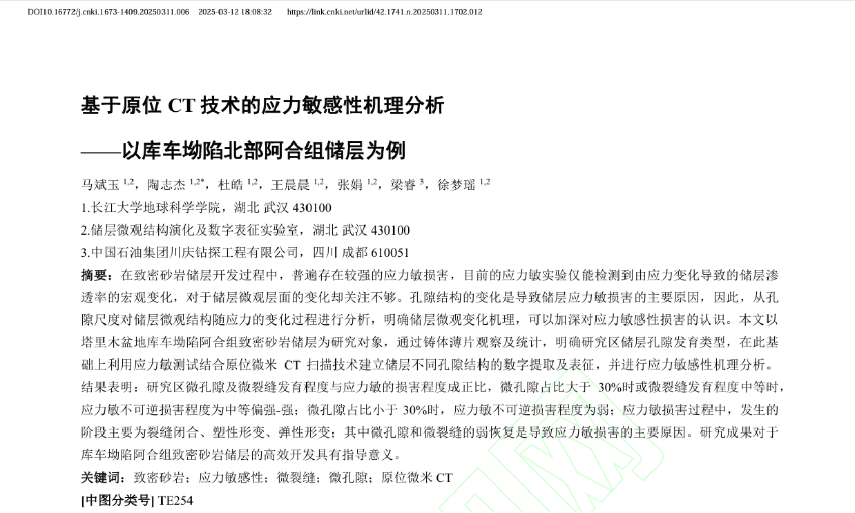 学报(自然科学版)》上发表了题为“基于原位CT技术的应力敏感性机理分析——以库车坳陷北部阿合组储层为例”的研究论文。