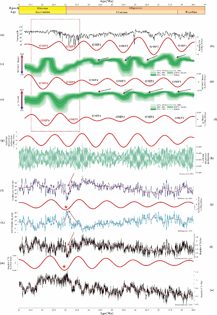 论文以南海琼东南盆地LS33a井(28.55-21.23 Ma)为研究对象,综合天文年代学、旋回地层学与古气候学方法,系统探讨晚渐新世-早中新世气候演变的天文强迫机制。主要亮点包括: