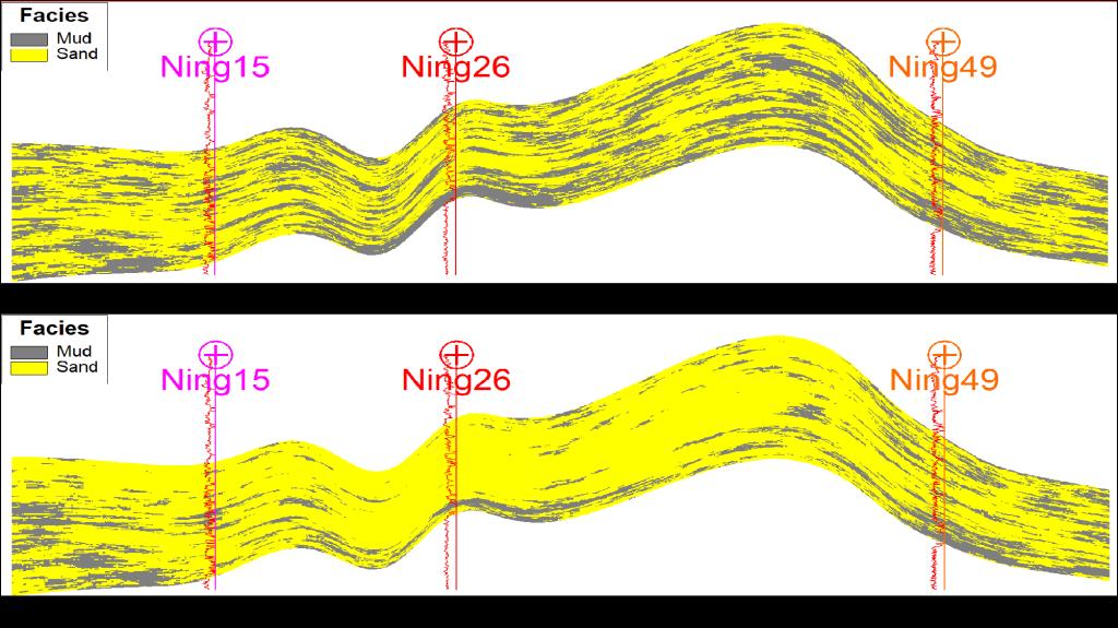 图2 概率面约束岩相对比剖面图