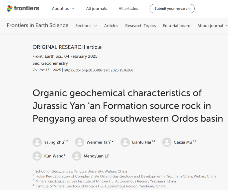 教师朱亚玲在SCI收录期刊《Frontiers in Earth Science》上发表题为“Organicgeochemical characteristicsofJurassicYan’anFormationsourcerockinPengyangareaofsouthwestern Ordosbasin”的研究论文,色情影片