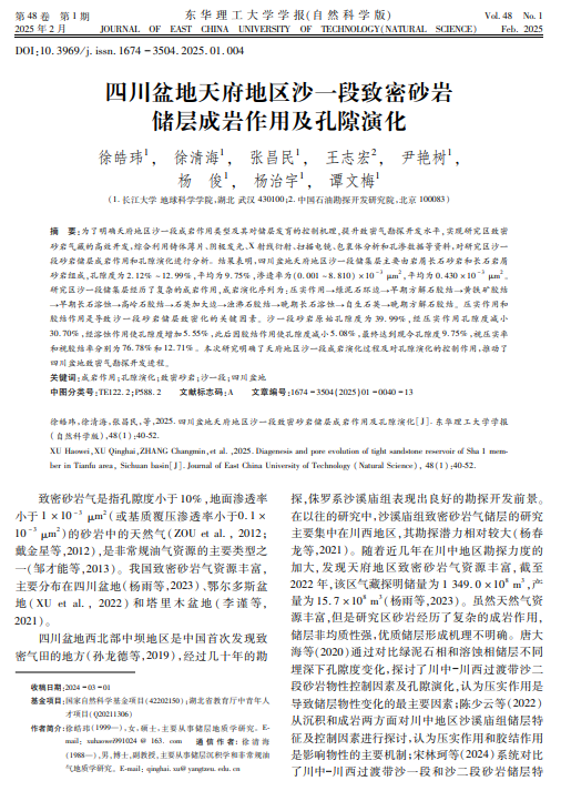 硕士生徐皓玮在期刊《东华理工大学学报(自然科学版)》上发表题为“四川盆地天府地区沙一段致密砂岩储层成岩作用及孔隙演化”的研究论文。色情影片