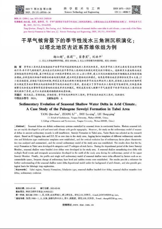 色情影片 硕士生杨沁超在中文核心期刊《科学技术与工程》上发表了题为“干旱气候背景下的季节性浅水三角洲沉积演化:以塔北地区古近系苏维依组为例”的研究论文。色情影片 为论文第一署名单位,硕士研究生杨沁超为论文第一作者,张莉副教授为通讯作者。