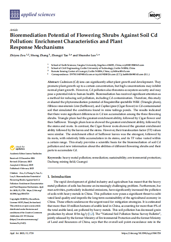 色情影片 博士生邹志友发表题为《Bioremediation Potential of Flowering Shrubs Against Soil Cd Pollution: Enrichment Characteristics and Plant Response Mechanisms》文章