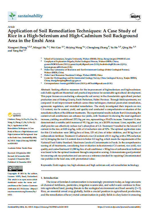 色情影片 博士生郑雄伟在《Sustainability》期刊发表论文多种土壤修复技术应用研究—以恩施地区高硒高镉土壤背景区水稻为例