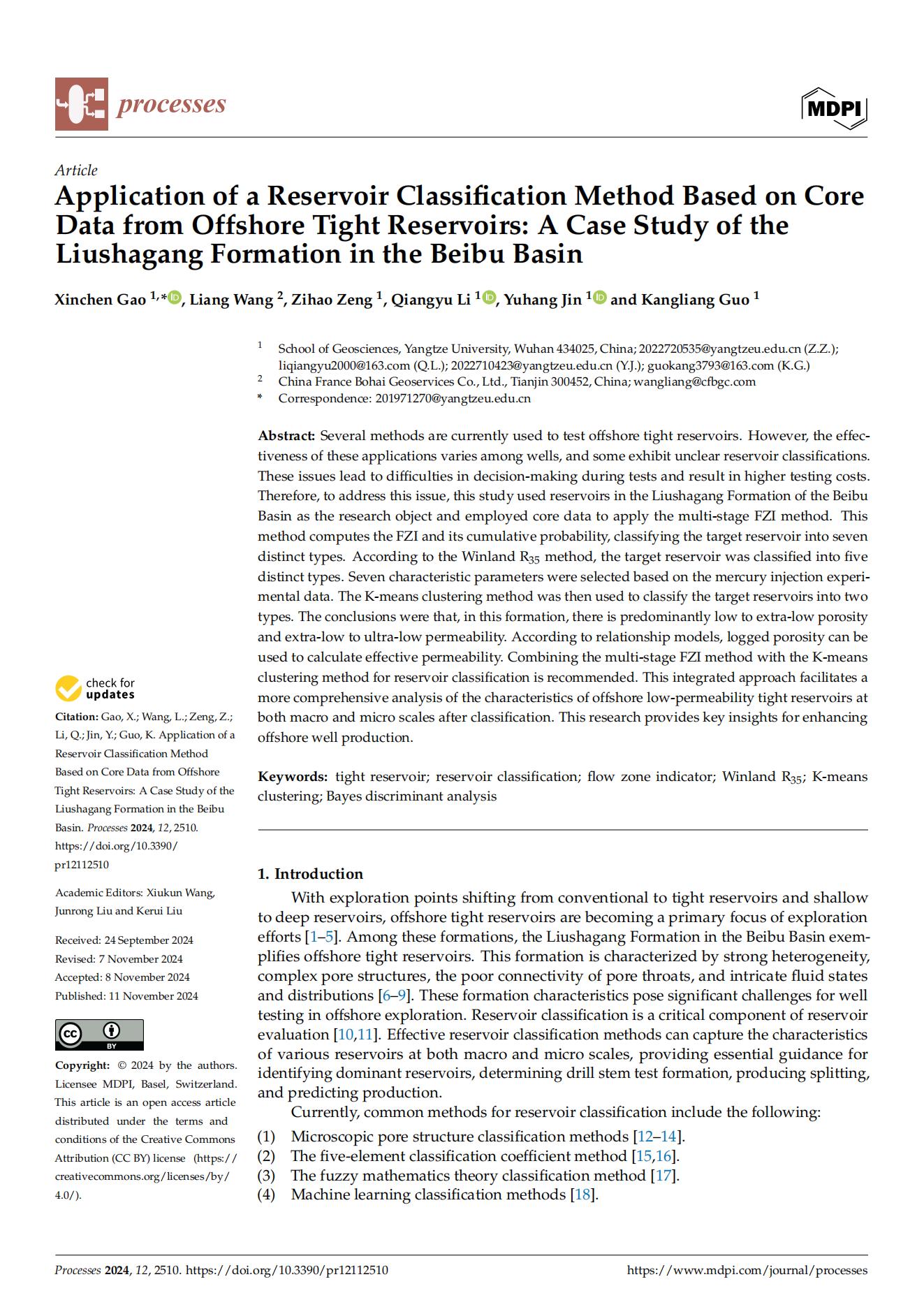 22级博士研究生在期刊《Processes》上发表题为“Application of a Reservoir Classification Method Based on CoreData from Offshore Tight Reservoirs: A Case Study of theLiushagang Formation in the Beibu Basin”的研究论文。色情影片
