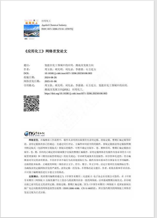 硕士生周玉钦在北大核心收录期刊《应用化工》上发表题为“氢能在化工领域中的应用、挑战及发展方向”的研究论文。色情影片