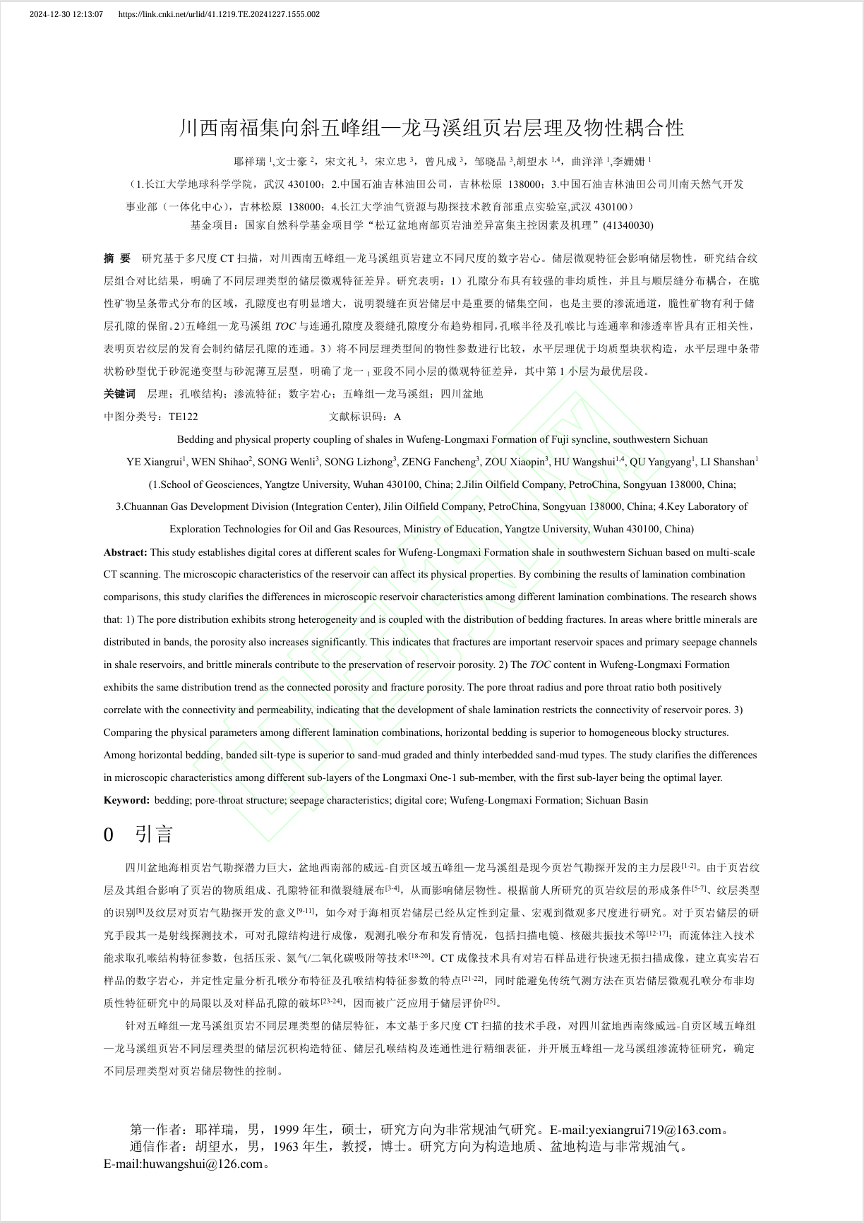 硕士生耶祥瑞在《断块油气田》上发表题为“川西南福集向斜五峰-龙马溪组页岩层理及物性耦合性”的研究论文。色情影片