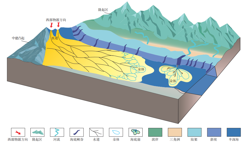 图1 琼东南盆地乐东北坡梅山组海底扇发育模式示意图