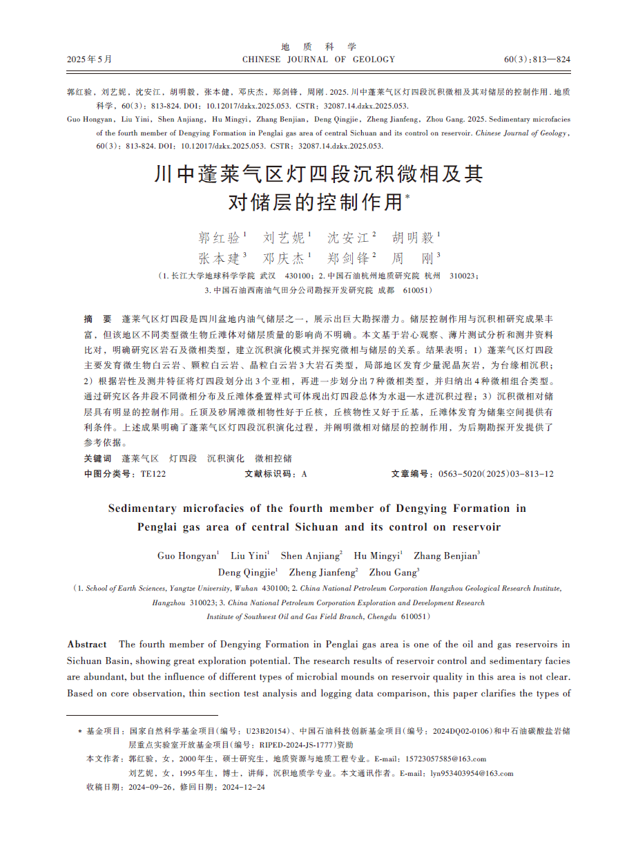 硕士生郭红验在期刊《地质科学》上发表了题为“川中蓬莱气区灯四段沉积微相及其对储层的控制作用”的研究论文。色情影片