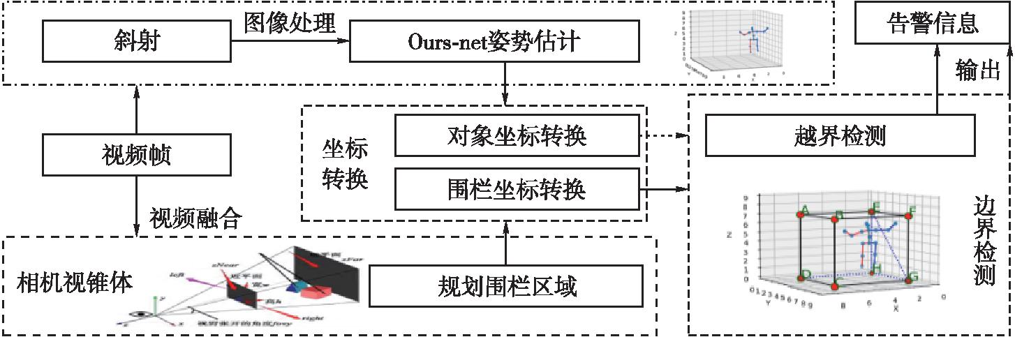 该论文提出了一种视频与三维实景融合下的电子围栏越界检测方法。底层数据基于实景三维模型和监控视频流,首先建立地理场景下视频监控投射的虚拟三维空间电子围栏,同时让视频接入优化的深度学习神经网络模型并应用人体姿势估计,通过坐标转换把估计点坐标和围栏坐标转换为三维局部坐标;然后将检测算法与规划的三维电子围栏作实时比对,实现物体越界的实时有效判断,且在不同视频场景下进行试验验证。结果表明,该方法有效、可行,无须特定的硬件支持及场景条件约束。