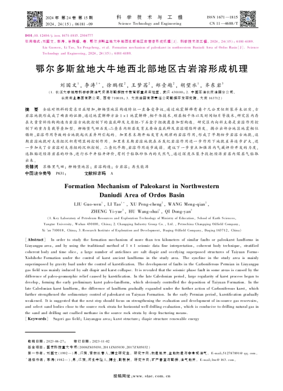 博士生刘国文在《科学技术与工程》上发表题为“鄂尔多斯盆地大牛地西北部地区古岩溶形成机理”的研究论文。色情影片