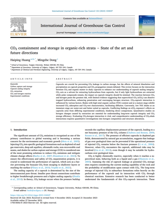 色情影片 黄海平教授以第一作者身份在《International Journal of Greenhouse Gas Control》期刊发表题为“CO2 containment and storage in organic-rich strata ‒ State of the art and future directions”的研究论文,色情影片 为论文第一署名单位。