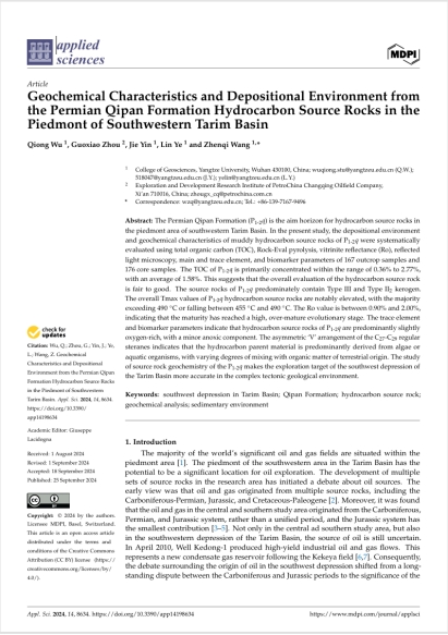色情影片 吴琼博士以第一作者身份在《Applied Sciences》上发表题为“Geochemical Characteristics and Depositional Environment from the Permian Qipan Formation Hydrocarbon Source Rocks in the Piedmont of Southwestern Tarim Basin”的研究论文,色情影片 为论文第一署名单位,吴琼为论文第一作者,导师王振奇为通讯作者。
