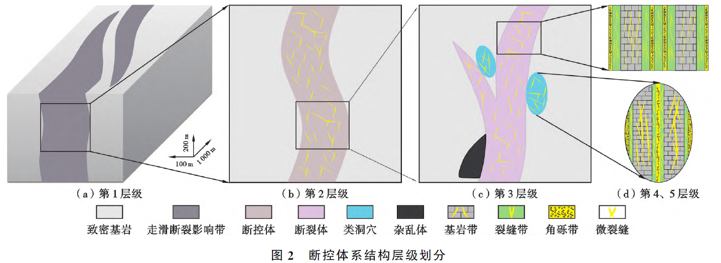 塔里木盆地顺北地区发育断控型碳酸盐岩缝洞储集体,论文以顺北4号断裂带为例,根据发育构造级次划分为走滑断裂带、断控体、断裂体-类洞穴-杂乱体、断裂体-类洞穴内部充填以及微裂缝共5个层级。针对断裂体、类洞穴与杂乱体,采取结构张量、相干能量梯度以及方差地震属性进行表征,完成轮廓模型雕刻;针对断裂体与类洞穴内部充填,设计改进的基于目标的建模方法建立断裂体与类洞穴内部充填结构模型;针对微裂缝,设计改进的离散裂缝网络模型建立符合真实形态的弯曲与共轭微裂缝模型。