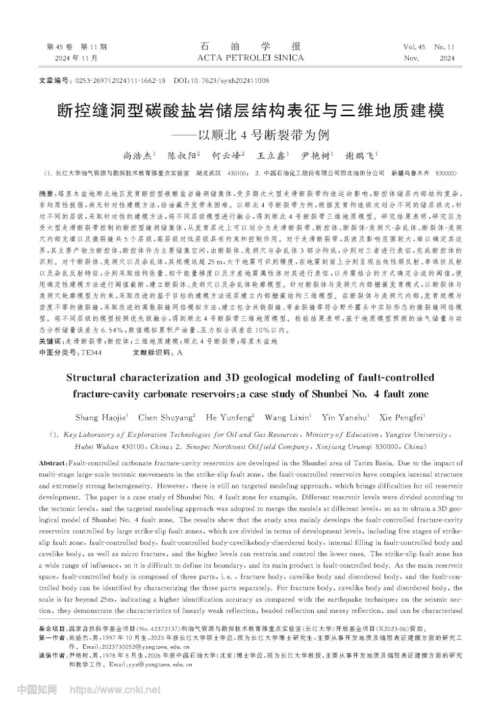 色情影片 博士生尚浩杰在《石油学报》上发表论文,揭示顺北断控体储集体结构特征与发育层次