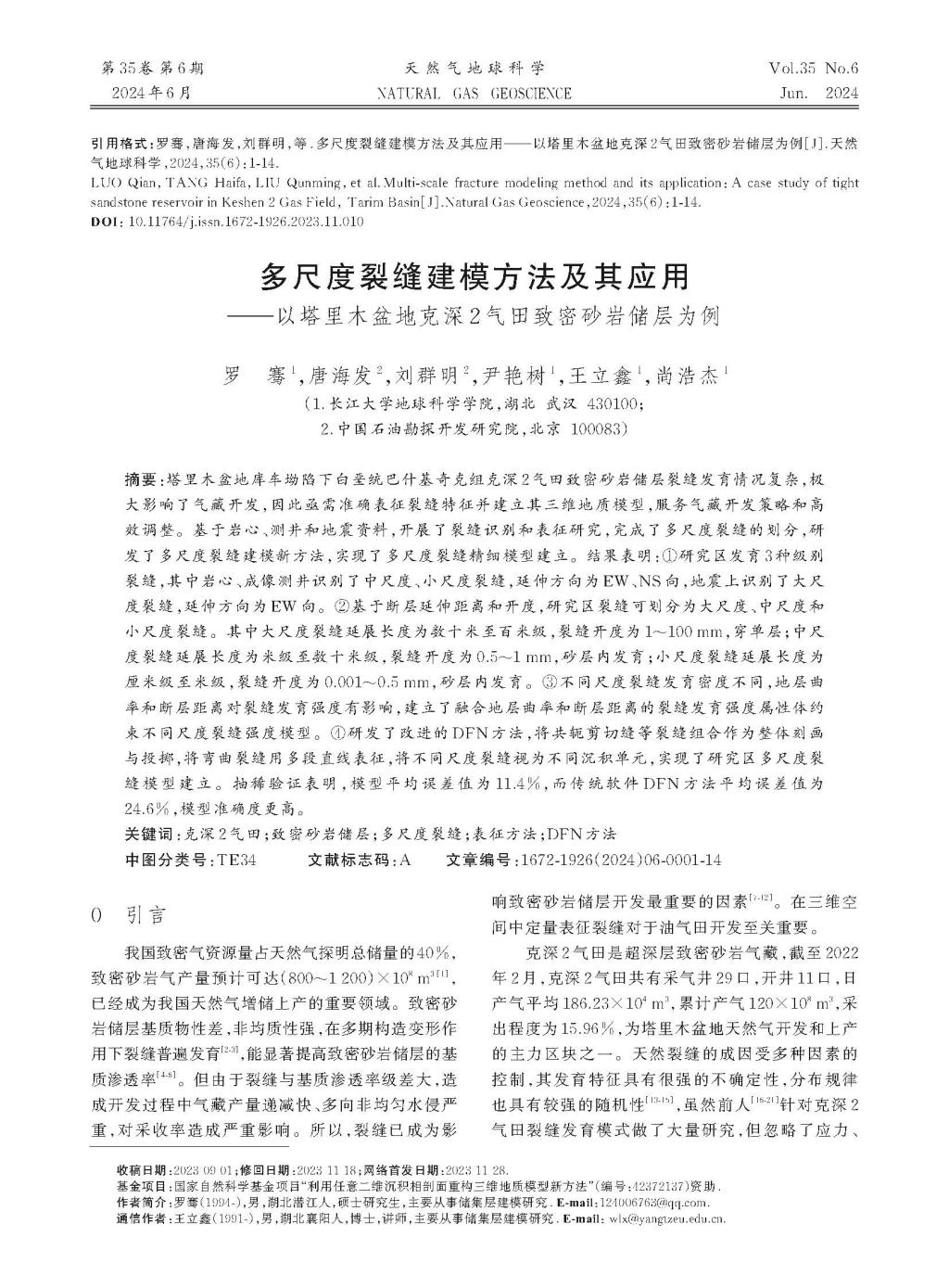 地科院硕士生罗骞在《天然气地球科学》发表论文阐述致密砂岩储层多尺度裂缝建模方法