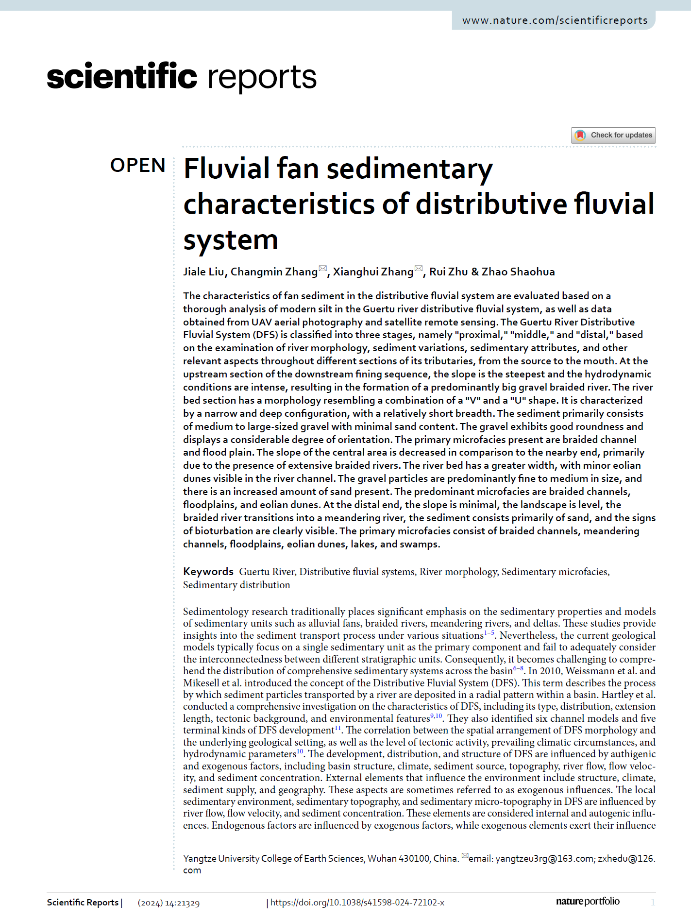 博士生刘家乐在期刊《scientific reports》上发表题为“Fluvial fan sedimentary characteristics of distributive fluvial system”的研究论文。色情影片