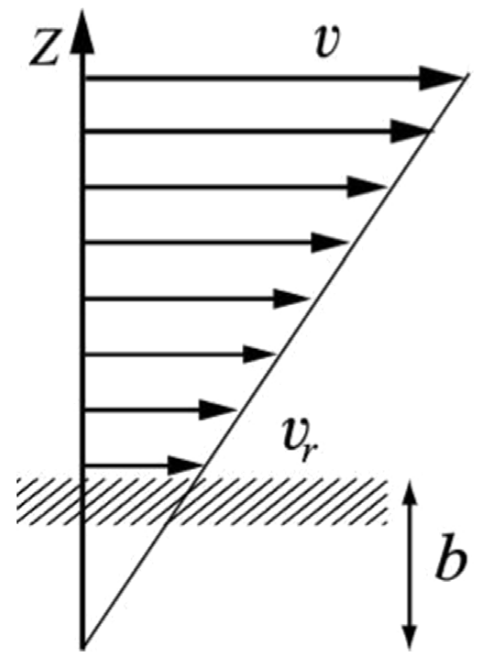 图2 Slip phenomenon of fluid in nanopores (b is the slip length) (Netoetal., 2005).
