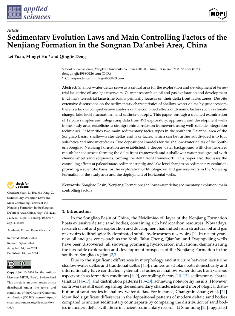硕士生袁磊在期刊《Applied sciences》上发表了题为“Sedimentary Evolution Laws and Main Controlling Factors of theNenjiangFormation in theSongnanDa’anbeiArea, China”的研究论文。色情影片