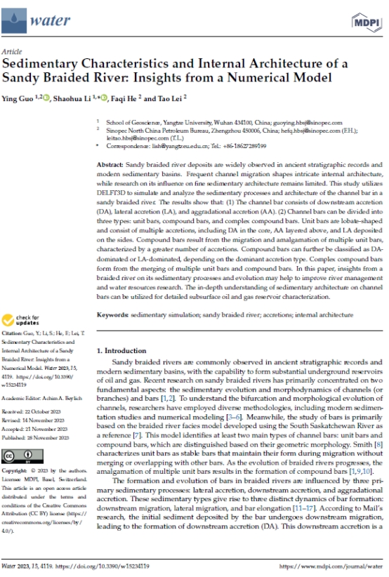 郭颖博士在期刊《Water》上发表题为“Sedimentary Characteristics and Internal Architecture of a Sandy Braided River: Insights from a Numerical Model”的研究论文。色情影片