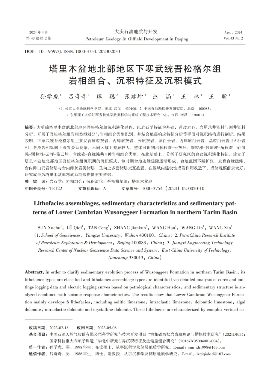 硕士生孙学虎在《大庆石油地质与开发》上发表了题为“塔里木盆地北部地区下寒武统吾松格尔组岩相组合、沉积特征及沉积模式”的研究论文,采用岩相学、沉积学的方法,分析了塔北地区下寒武统吾松格尔组沉积特征演化过程。色情影片
