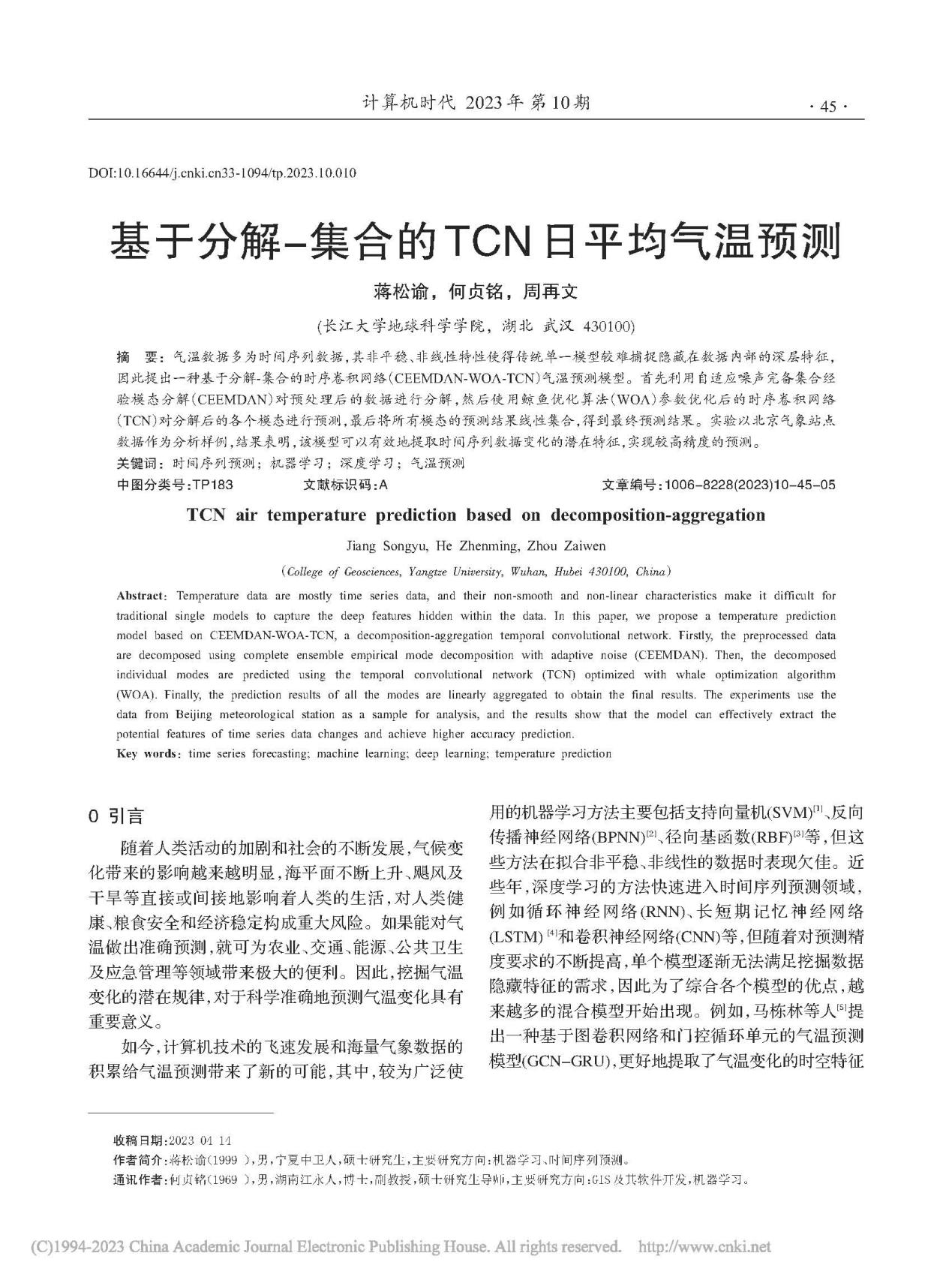 何贞铭副教授团队长期从事GIS、RS应用的研究,团队成员蒋松渝在期刊《计算机时代》上发表题为“基于分解-集合的TCN日平均气温预测”的研究论文。色情影片