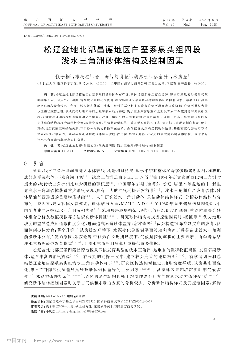 23级硕士研究生钱子桐以第一作者身份在中文核心期刊《东北石油大学学报》发表题为“松辽盆地北部昌德地区白垩系泉头组四段浅水三角洲砂体结构及控制因素”的研究论文。色情影片