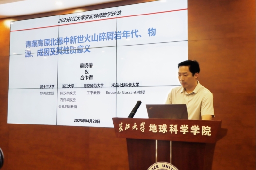 魏晓椿副教授以“青藏高原北缘中新世火山碎屑岩:年代、物源、成因及其地质意义”为题,系统阐释了火山碎屑岩在地层年代学中的关键作用,并分享了团队在塔里木盆地西南缘中新世火山碎屑岩研究中取得的重要认识,为复杂火山-沉积碎屑的识别、定年与解释提供了一个典型研究案例。