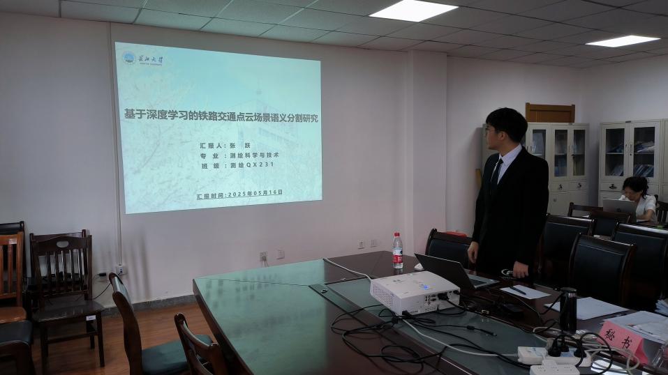 张跃的学位论文题为《基于深度学习的铁路交通点云场景语义分割研究》,在导师杨元维副教授的指导下,针对点云场景的智能解译问题展开研究。论文以铁路轨道交通场景作为研究对象,在构建高细粒度铁路点云语义分割数据集R3DCS的数据基础上,设计了场景分段处理及姿态矫正预处理算法,并搭建了动态原型指导下的逐点多尺度特征金字塔点云语义解析架构,为铁路场景智能解译提供了重要理论依据并具有一定的应用价值。
