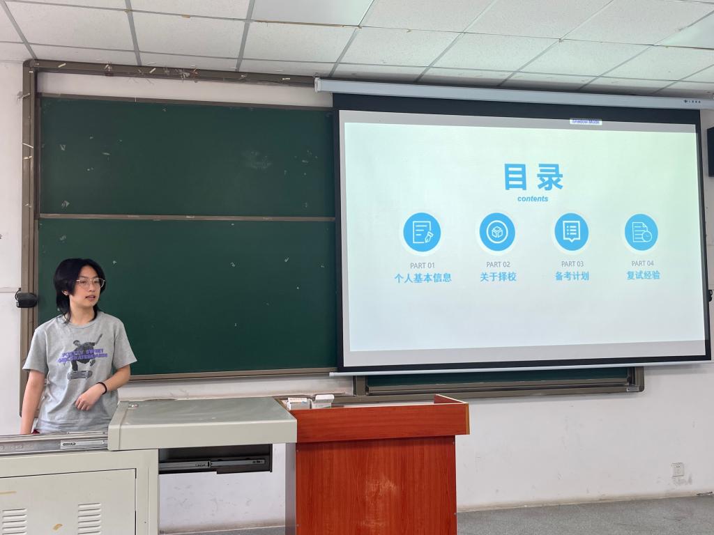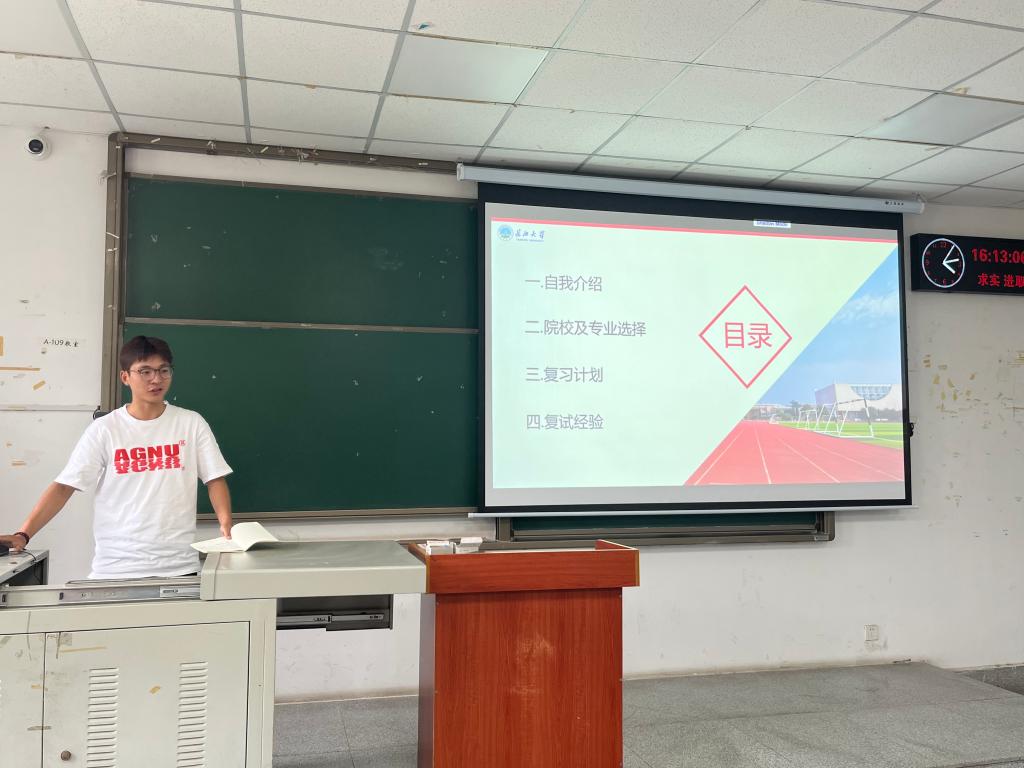 于6月7日14:30在A-109教室举行了考研经验分享会。来自19级6位成功上岸的同学用自己的切身经历为大家提供了详细的信息收集、院校选择、复习计划、复试准备和压力调节等方面的分享和交流。分享会由20级辅导员郭霖老师主持,共近百名同学参会。